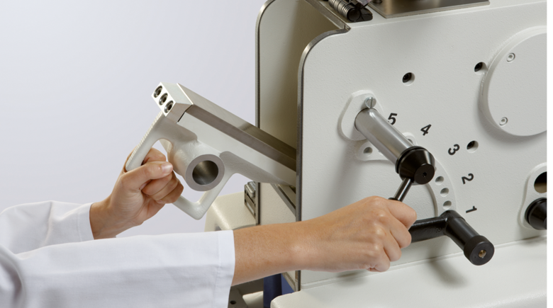 เครื่องบดลดขนาดตัวอย่าง โดยใช้เทคนิคแบบ แรงกดอัด Jaw Cruscher ยี่ห้อ FRITSCH รุ่น PULVERISETTE 1 Model I Classic Line